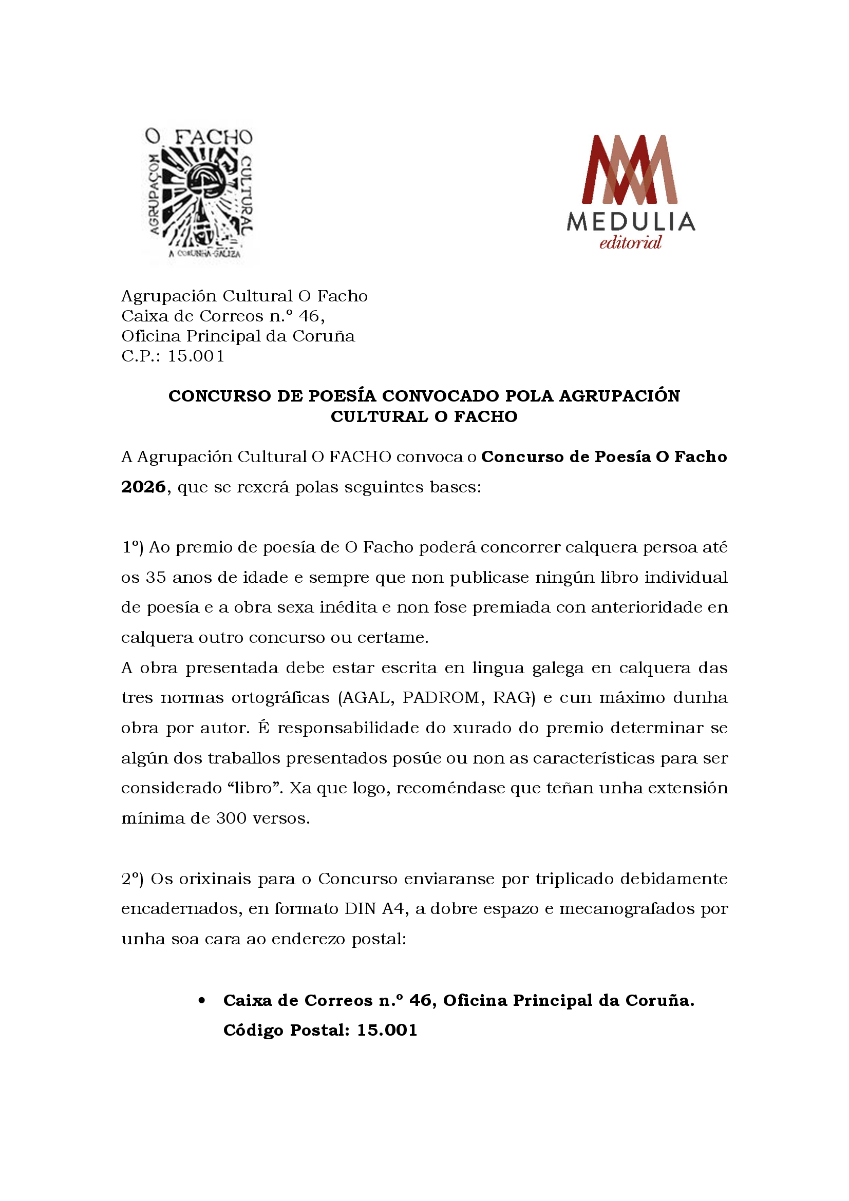 Bases do Concurso de poesía convocado pola A. C. O Facho