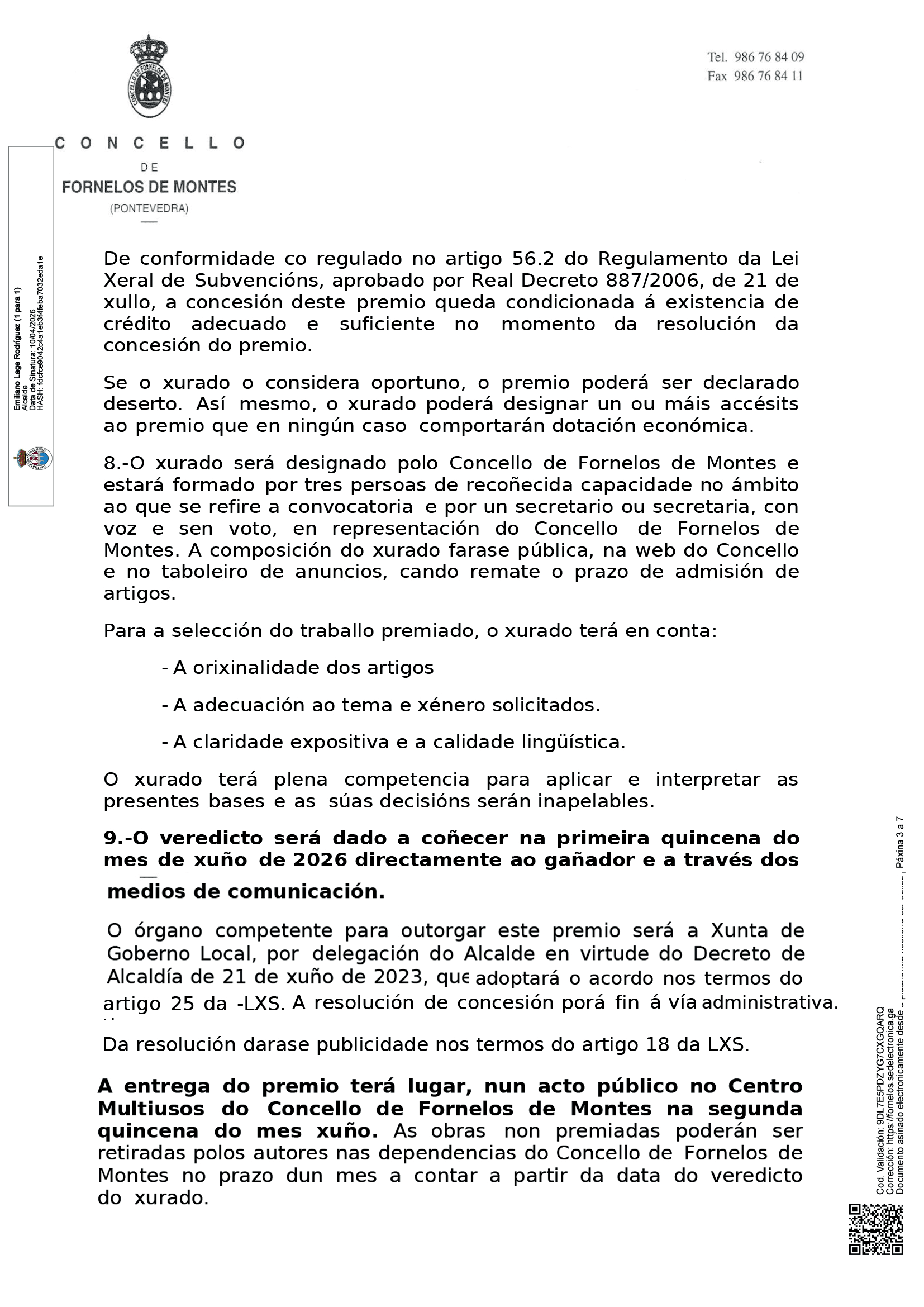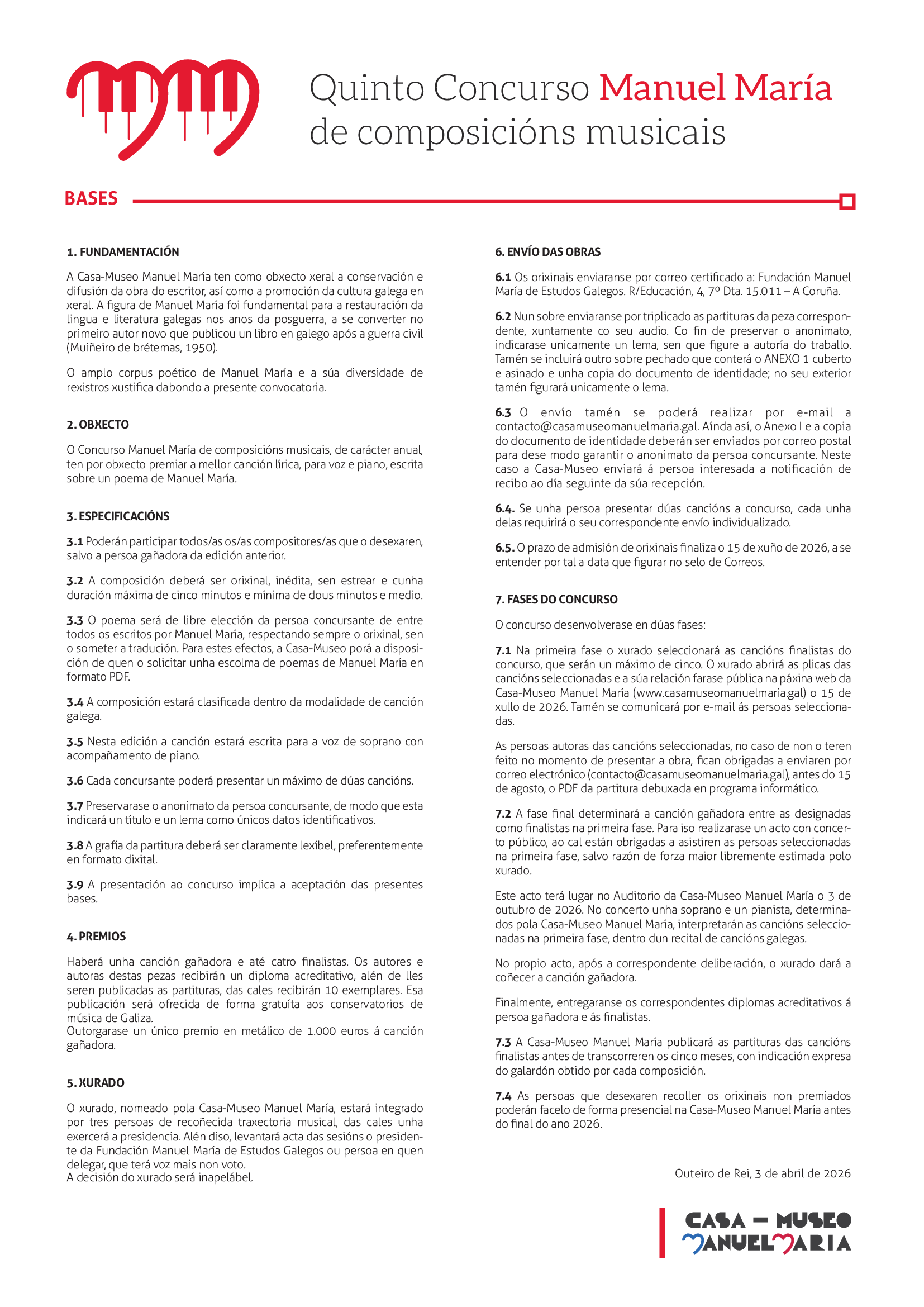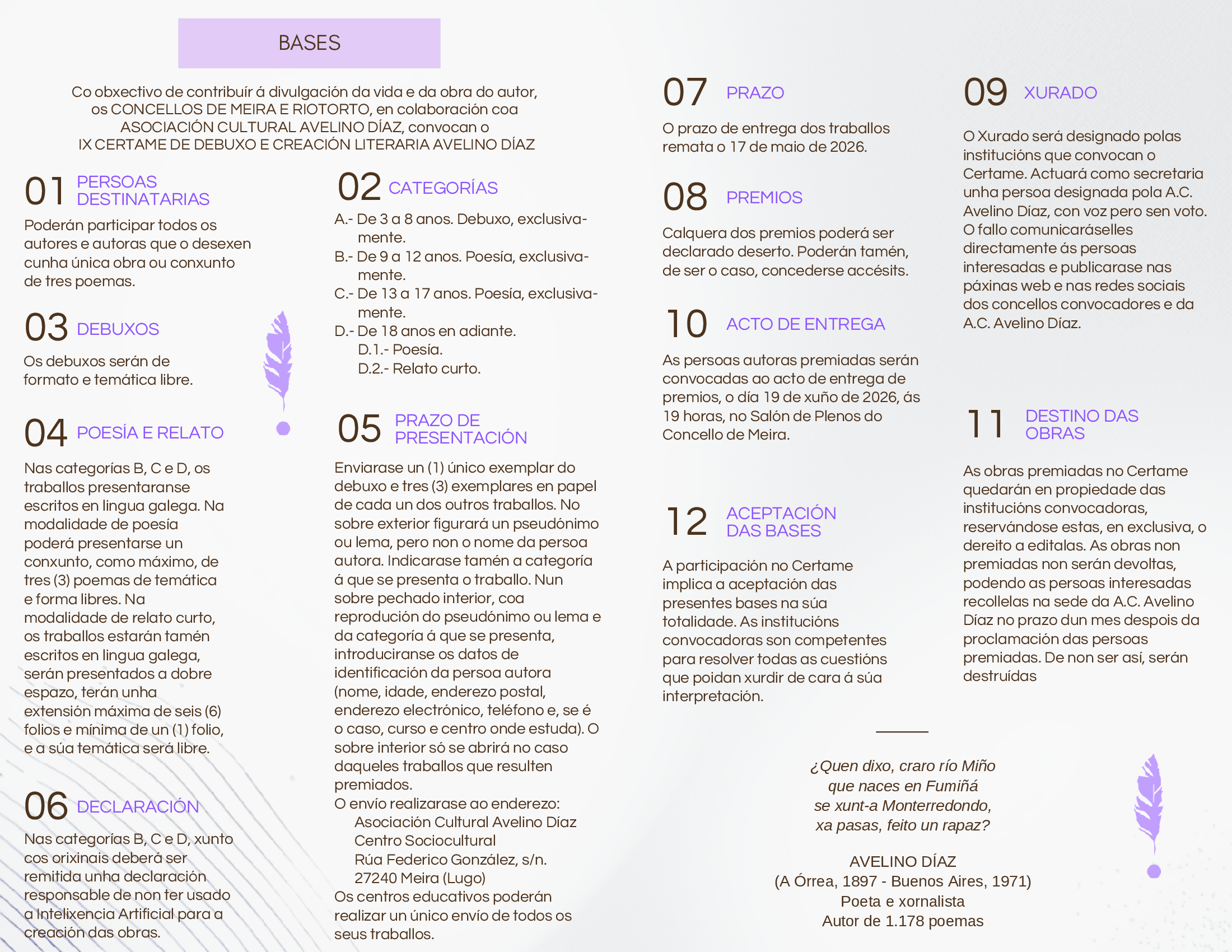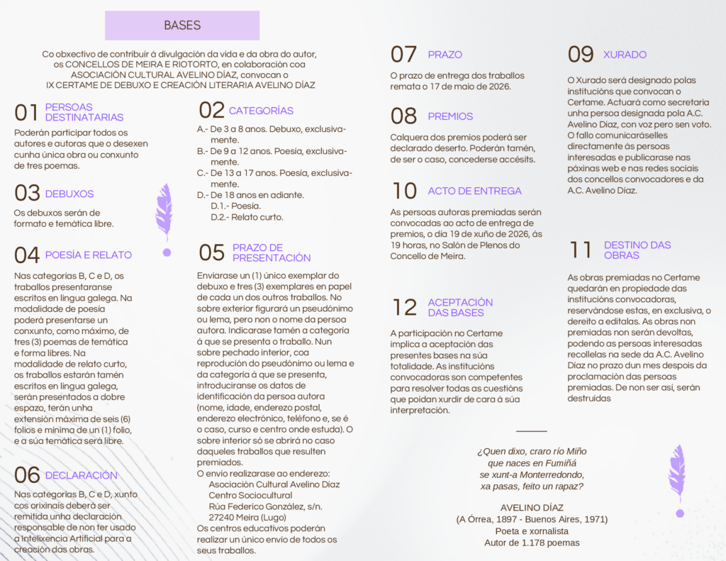 – A literaria, que se encargará das categorías de Narrativa, Teatro, Poesía, Infantil e Xuvenil e Promoción da Lectura.