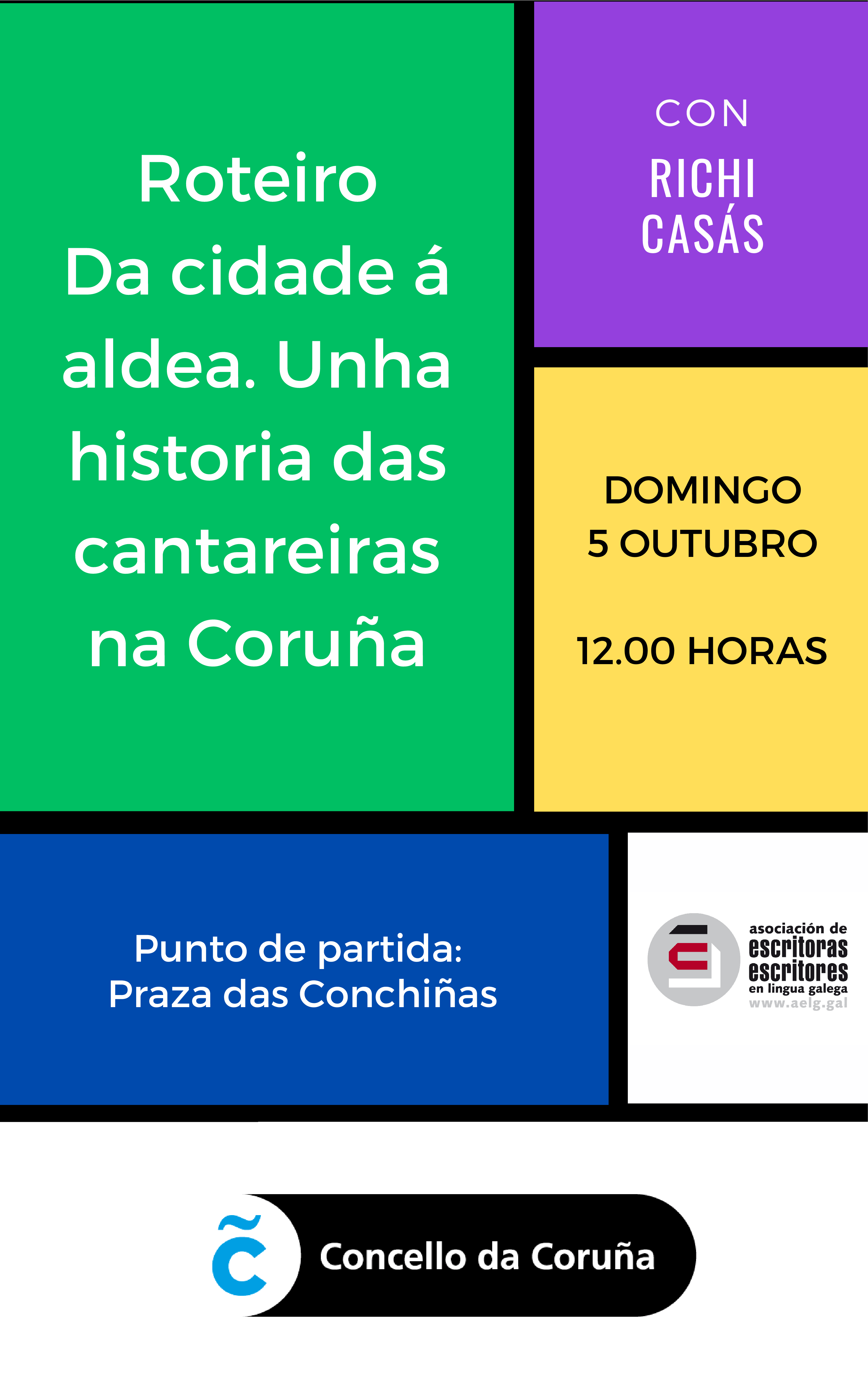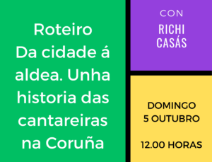 O Roteiro Da cidade á aldea. Unha historia das cantareiras na Coruña, guiado por Richi Casás, é unha iniciativa da AELG desenvolvida co apoio do Concello da Coruña.