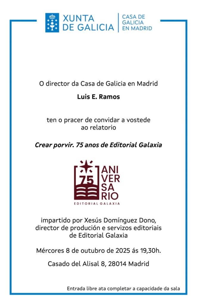 Madrid: relatorio Creando porvir. 75 anos de Editorial Galaxia, por Xesús Domínguez Dono