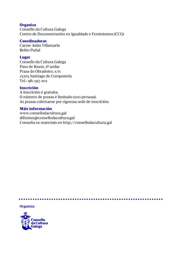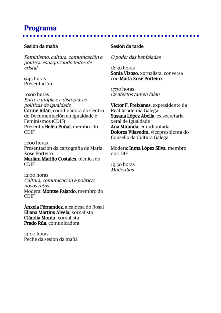 Esta entrada foi publicada en Coloquios, Conferencias, Encontros e Xornadas, Homenaxes, Mesas redondas, Política, Sociedade, Xornalismo e etiquetada Ana Miranda, Ánxela Fernández Callís, Belén Puñal, Carme Adán, Cláudia Morán, Consello da Cultura Galega, Dolores Vilavedra, Eliana Martins Alvela, Inma López Silva, María Xosé Porteiro, Mariám Mariño Costales, Montse Fajardo, Prado Rúa, Sonia Vizoso, Susana López Abella, Víctor F. Freixanes por asociacionescritoras-es. Marca a ligazón permanente.