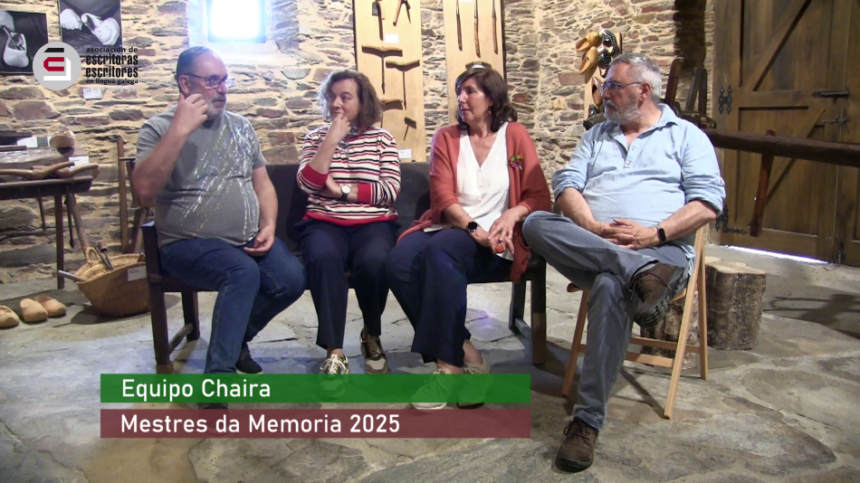 A Sección de Literatura de Tradición Oral da AELG, previa deliberación do Grupo de Traballo composto por Ana Acuña, Félix Castro Vicente, Carme Pernas Bermúdez, Calros Solla, Xurxo Souto, Cesáreo Sánchez Iglesias, Xosé Manuel Varela, Lois Pérez e Antonio Reigosa, propuxo ao Consello Directivo da Asociación de Escritoras e Escritores en Lingua Galega recoñecer como Mestra e Mestras/es da Memoria 2025 respectivamente a María da Vrea e ao Equipo Chaira, polas súas achegas á mesma ao longo das súas vidas, contribuíndo así a manter viva unha parte fundamental da nosa memoria colectiva e o saber popular.