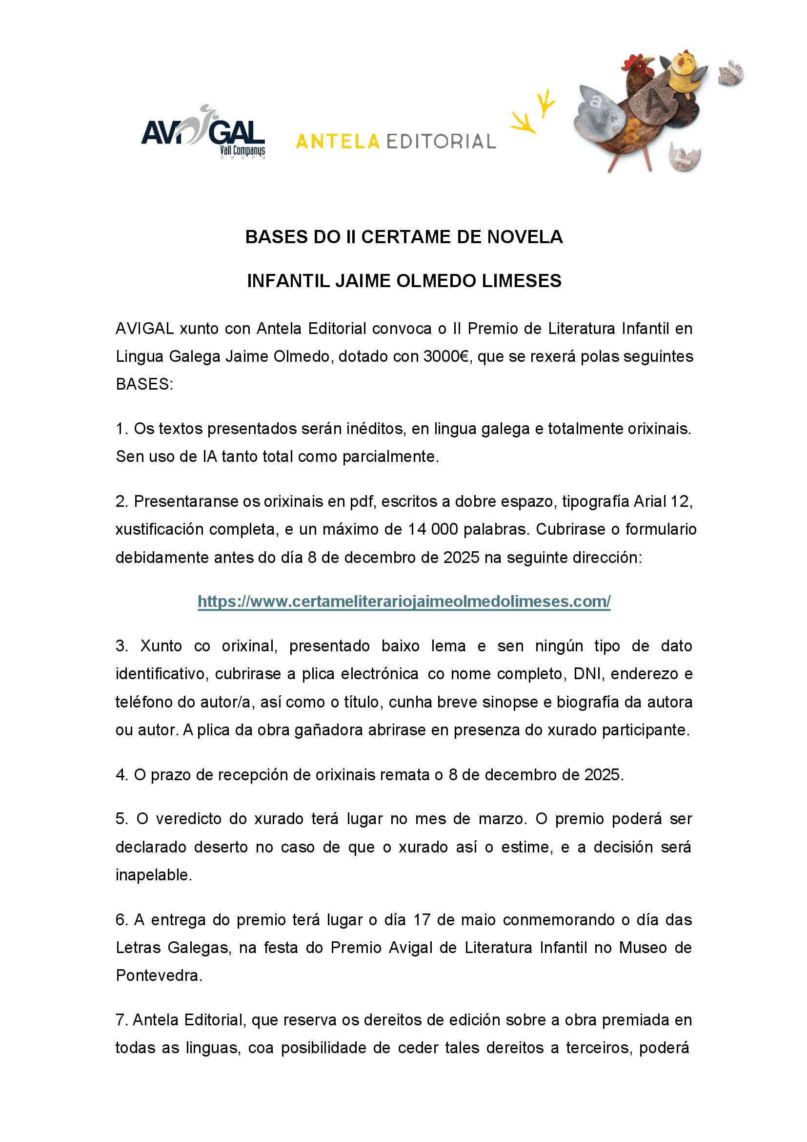 Esta entrada foi publicada en Premios Literatura Infantil e etiquetada Antela Editorial, Avigal, Certame de Novela Infantil Jaime Olmedo por asociacionescritoras-es. Marca a ligazón permanente.