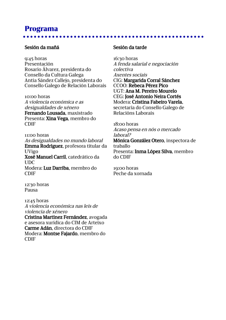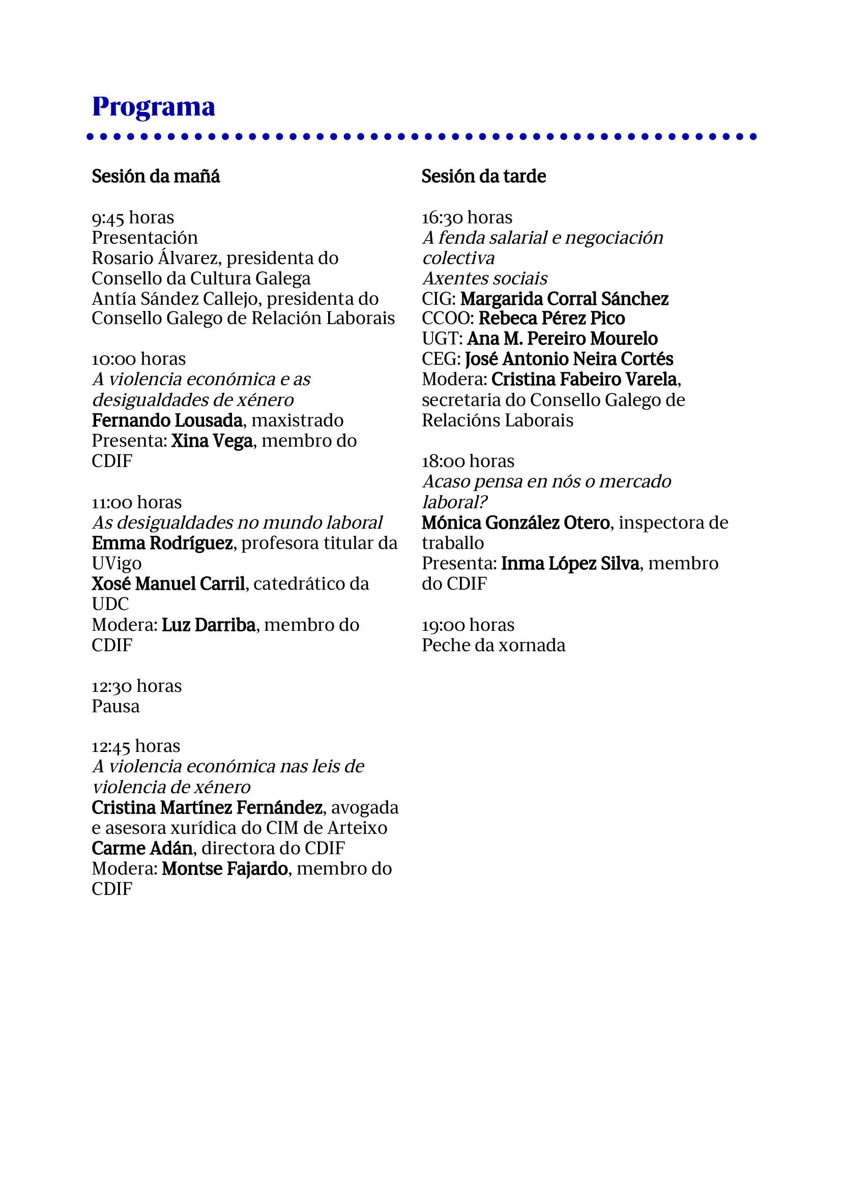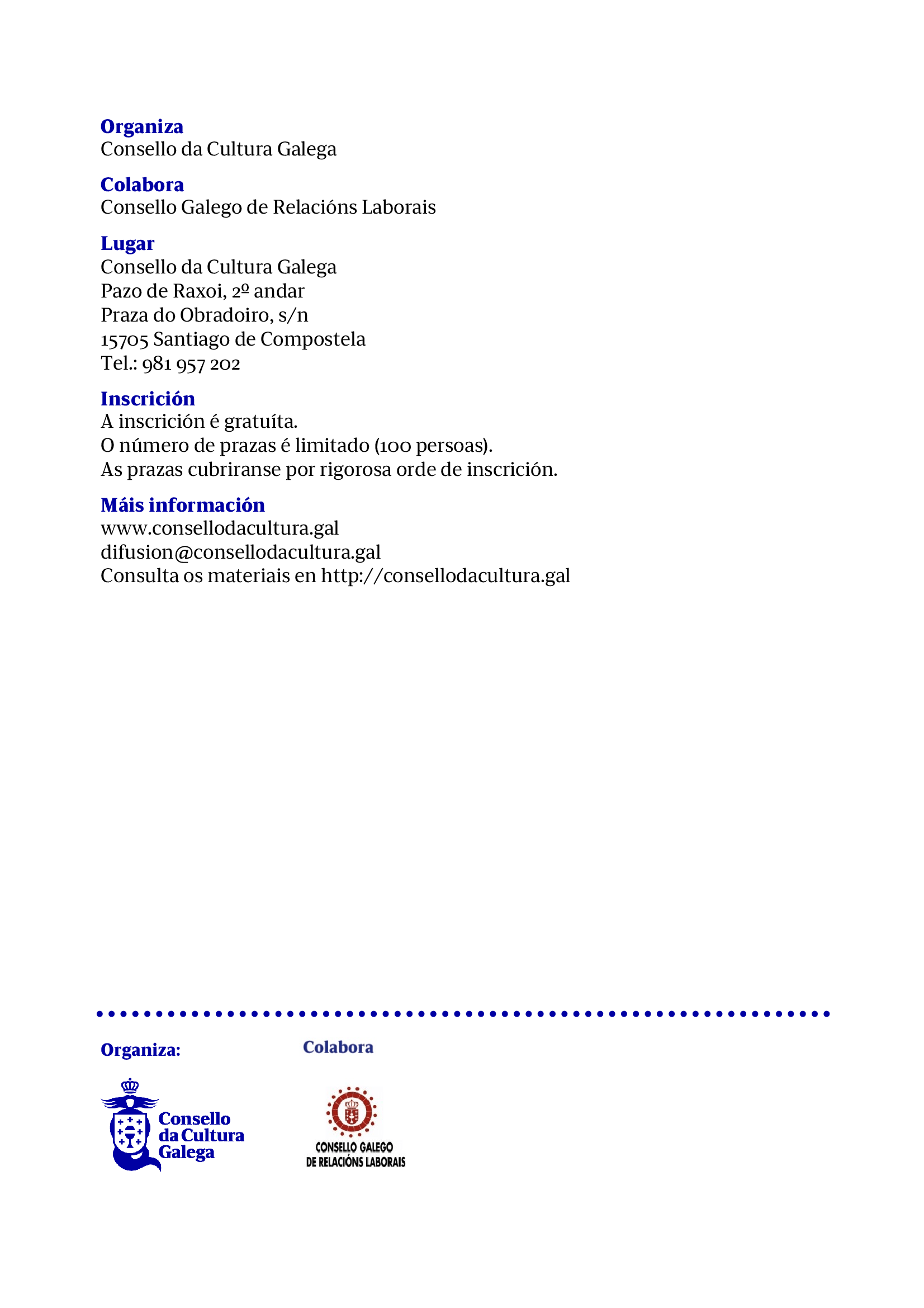 Esta entrada foi publicada en Conferencias, Encontros e Xornadas, Mesas redondas, Sociedade e etiquetada Ana M. Pereiro Mourelo, Antía Sández Callejo, Carme Adán, Consello da Cultura Galega, Consello Galego de Relacións Laborais, Cristina Fabeiro Varela, Cristina Martínez Fernández, Emma Rodríguez, Fernando Lousada, Inma López Silva, José Antonio Neira Cortés, Luz Darriba, Margarida Corral, Mónica González Otero, Montse Fajardo, Rebeca Pérez Pico, Rexina Vega, Rosario Álvarez Blanco, Xosé Manuel Carril por asociacionescritoras-es. Marca a ligazón permanente.