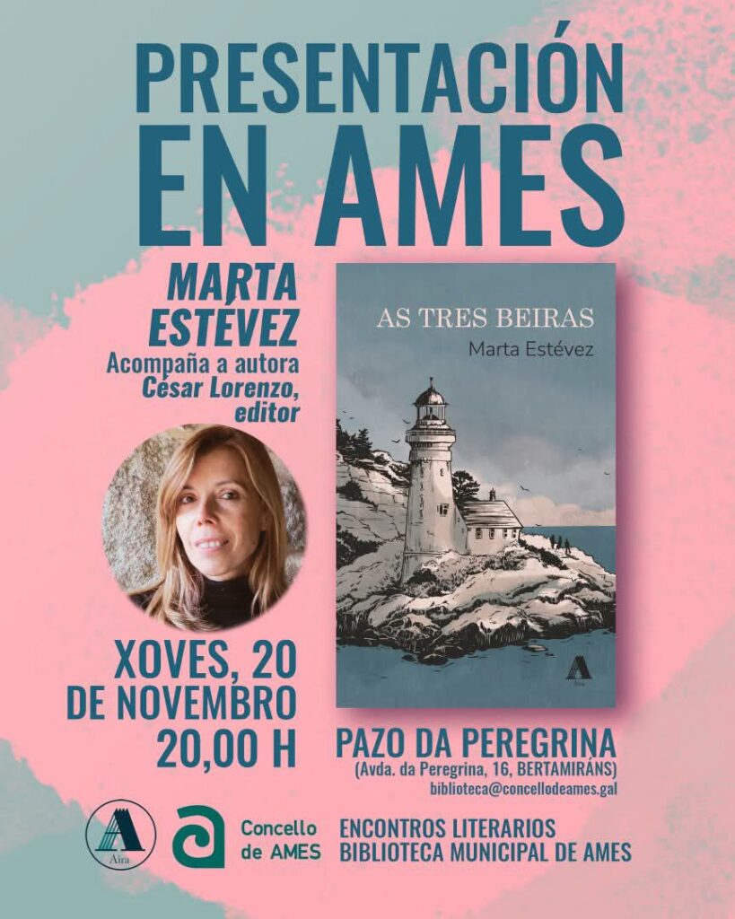 Esta entrada foi publicada en Narrativa, Presentacións de libros e etiquetada Aira Editorial, As tres beiras, Biblioteca Municipal de Ames, César Lorenzo Gil, Concello de Ames, Marta Estévez por asociacionescritoras-es. Marca a ligazón permanente.