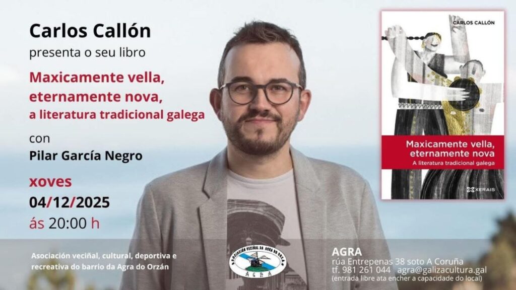 Esta entrada foi publicada en Divulgación, Oralidade, Presentacións de libros e etiquetada Asociación Veciñal da Agra do Orzán da Coruña, Carlos Callón, Edicións Xerais, Maxicamente vella eternamente nova a literatura tradicional galega, Pilar García Negro por asociacionescritoras-es. Marca a ligazón permanente.