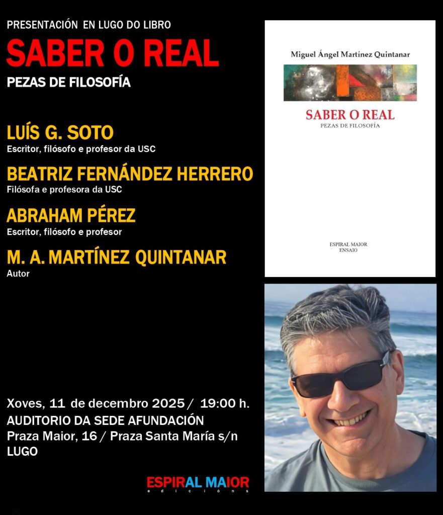 Lugo: presentación de Saber o real. Pezas de filosofía, de Miguel Ángel Martínez Quintanar