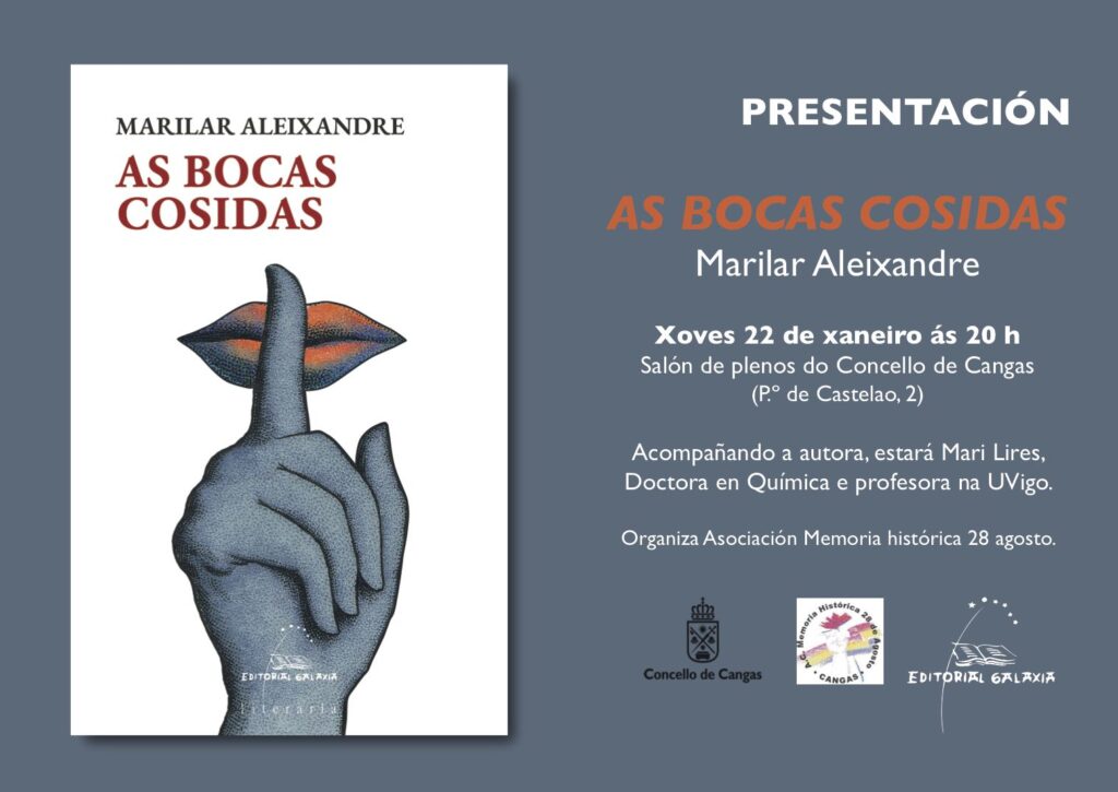 Esta entrada foi publicada en Narrativa, Presentacións de libros e etiquetada A. C. Memoria Histórica 28 de agosto en Cangas, As bocas cosidas, Concello de Cangas, Editorial Galaxia, Mari Lires, Marilar Aleixandre por asociacionescritoras-es. Marca a ligazón permanente.