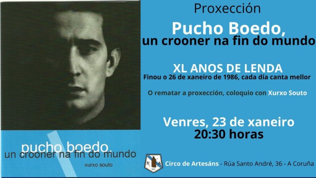 A Coruña: proxección de Pucho Boedo, un crooner na fin do mundo, e coloquio con Xurxo Souto