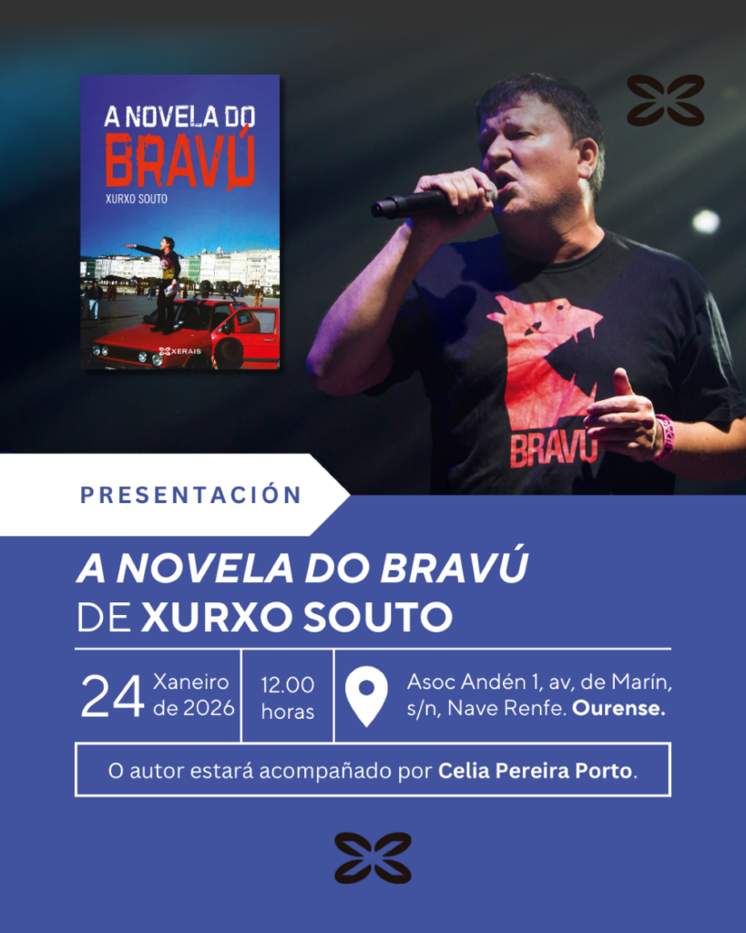 Esta entrada foi publicada en Música, Narrativa, Presentacións de libros e etiquetada A novela do Bravú, Asociación Andén Primeiro A Ponte (Ourense), Celia Pereira Porto, Edicións Xerais, Xurxo Souto por asociacionescritoras-es. Marca a ligazón permanente.