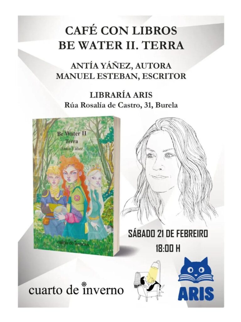 Esta entrada foi publicada en Coloquios, Narrativa, Presentacións de libros e etiquetada Antía Yáñez Rodríguez, Be Water II. Terra, Cuarto de inverno Editora, Libraría Aris (Burela), Manuel Esteban por asociacionescritoras-es. Marca a ligazón permanente.
