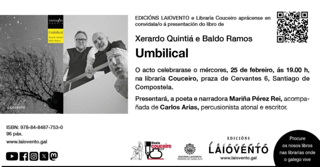 Esta entrada foi publicada en Poesía, Presentacións de libros e etiquetada Baldo Ramos, Carlos Arias, Edicións Laiovento, Libraría Couceiro de Santiago, Mariña Pérez Rei, Umbilical, Xerardo Quintiá por asociacionescritoras-es. Marca a ligazón permanente.
