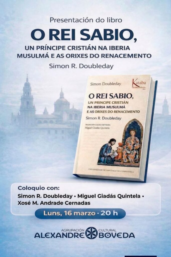 Esta entrada foi publicada en Biografías, Divulgación, Historia, Presentacións de libros e etiquetada Agrupación Cultural Alexandre Bóveda, Miguel Giadás, O Rei Sabio. Un príncipe cristián a Iberia musulmá e as orixes do Renacemento, Simon R. Doubleday, Universidade de Santiago de Compostela, Xosé Miguel Andrade Cernadas por asociacionescritoras-es. Marca a ligazón permanente.