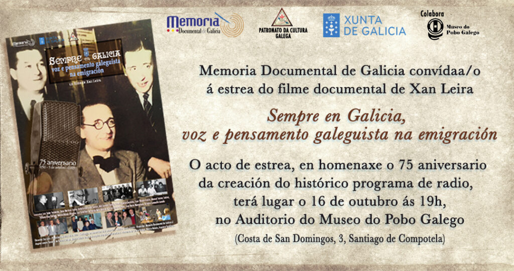 Compostela: estrea do filme documental ‘Sempre en Galicia, voz e pensamento galeguista na emigración’, de Xan Leira