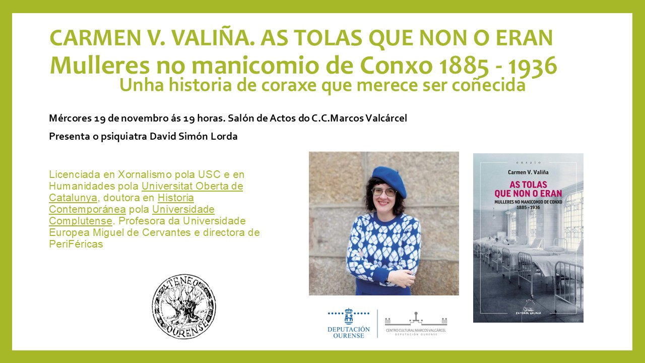 Publicado en Ensaio, Historia, Presentacións de libros | Etiquetado As tolas que non o eran, Carmen V. Valiña, Centro Cultural Marcos Valcárcel Ourense, David Simón, Deputación de Ourense, Editorial Galaxia