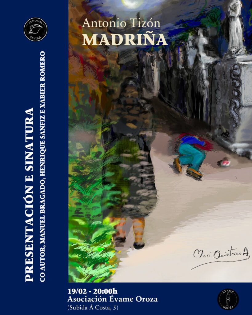 Publicado en Narrativa, Presentacións de libros | Etiquetado Antonio Tizón, Asociación Cultural Évame Oroza, Editorial Elvira, Henrique Sanfiz, Madriña, Manuel Bragado, Xabier Romero