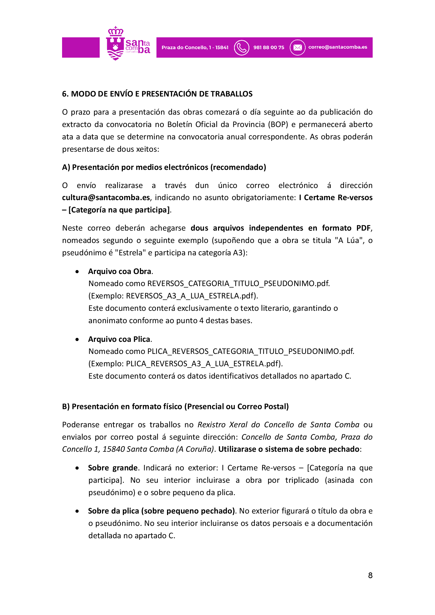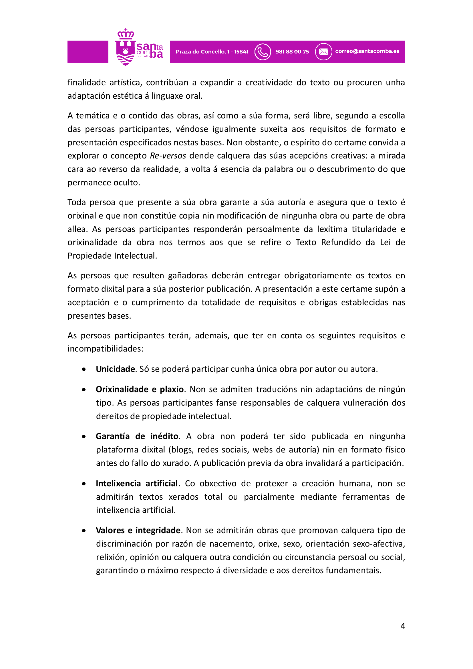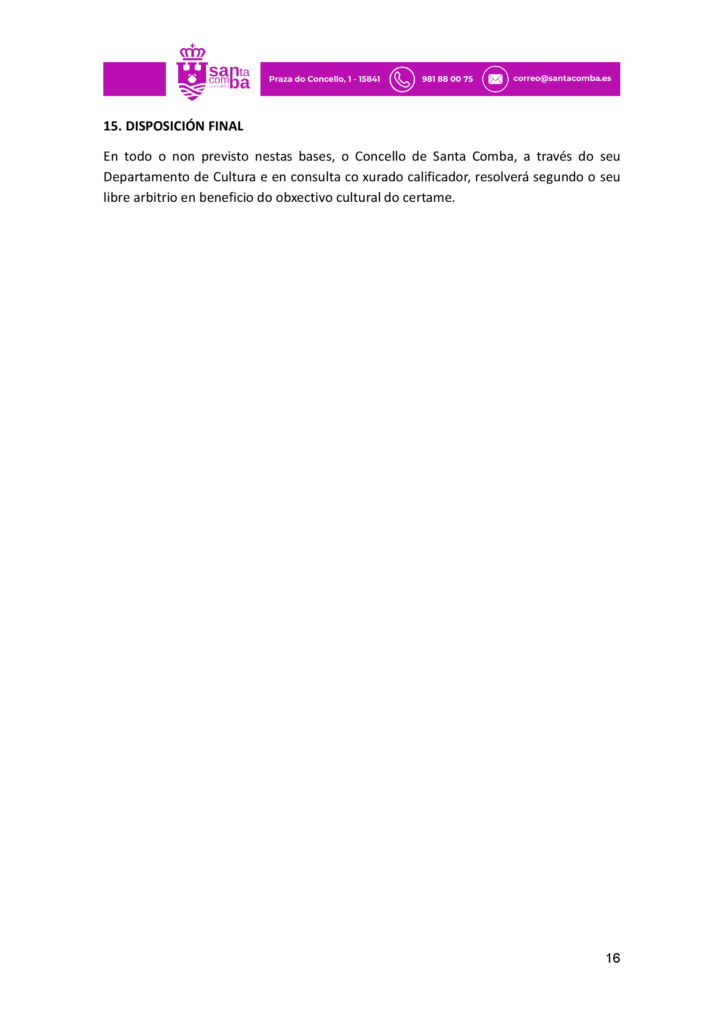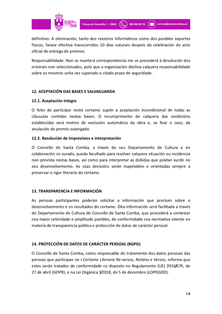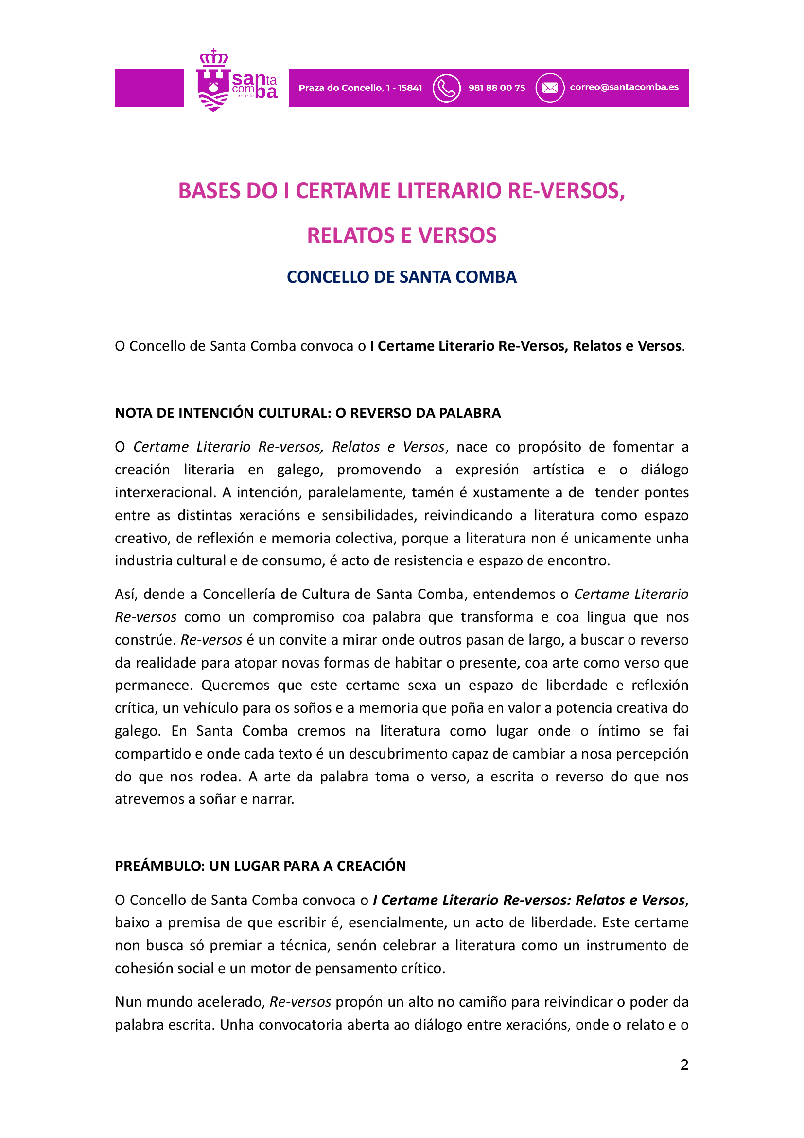 Bases do I Certame Literario de relatos e versos Re-versos de Santa Comba