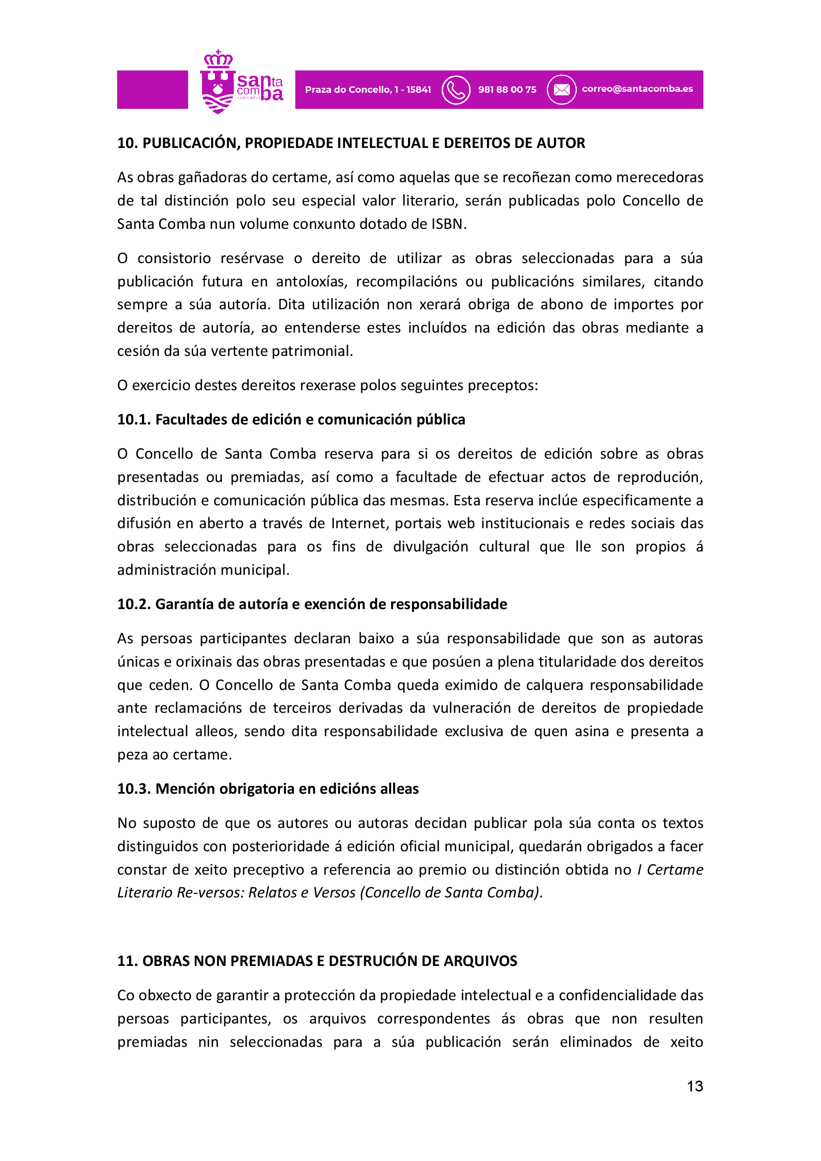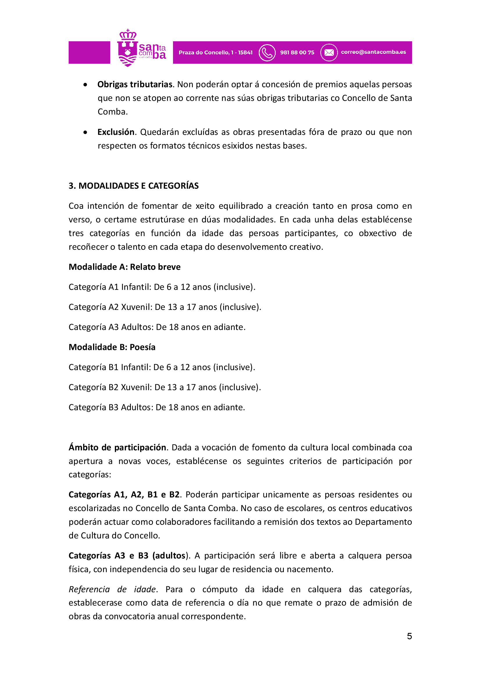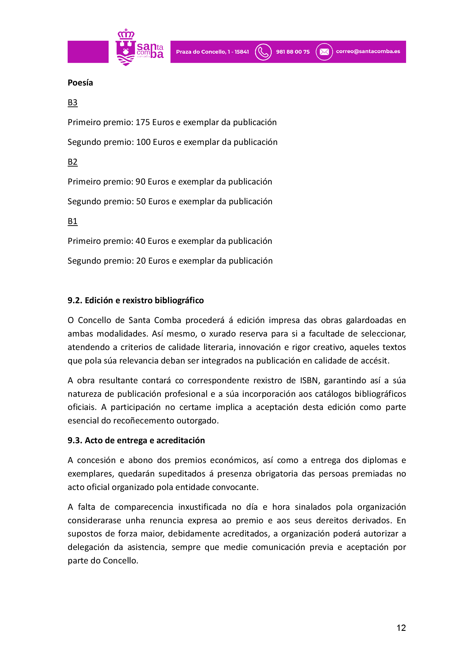 Publicado en Premios Literatura Infantil, Premios Literatura Xuvenil, Premios narrativa: convocatorias, Premios poesía: convocatorias | Etiquetado Certame Literario de relatos e versos Reversos de Santa Comba, Concello de Santa Comba