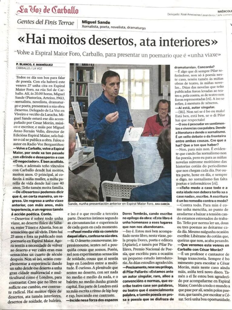 Miguel Sande: “Hai moitos desertos, ata interiores”