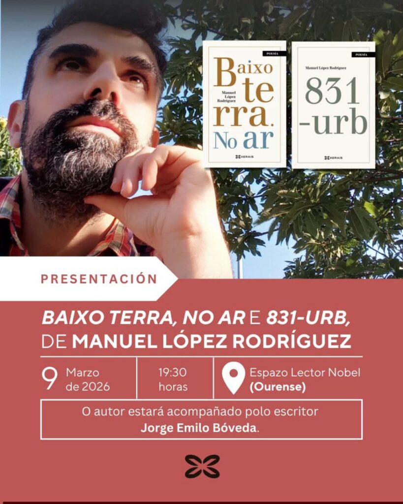 Ourense: presentacións de Onde nace, Baixo terra. No ar e 831-Urb, de Manuel López Rodríguez