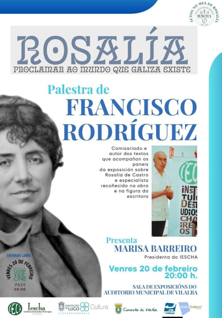 Publicado en Conferencias, Poesía | Etiquetado Área de Cultura da Deputación de Lugo, Concello de Vilalba, Federación Galiza Cultura, Francisco Rodríguez, Instituto de Estudos Chairegos, Marisa Barreiro Mejuto, Rosalía de Castro