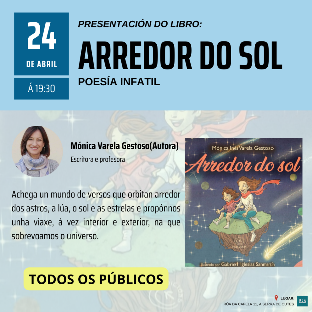 Publicado en Infantil e xuvenil, Poesía, Presentacións de libros | Etiquetado Arredor do sol, Edicións Fervenza, Mónica Varela, Ula Libraría Social (A Serra de Outes)