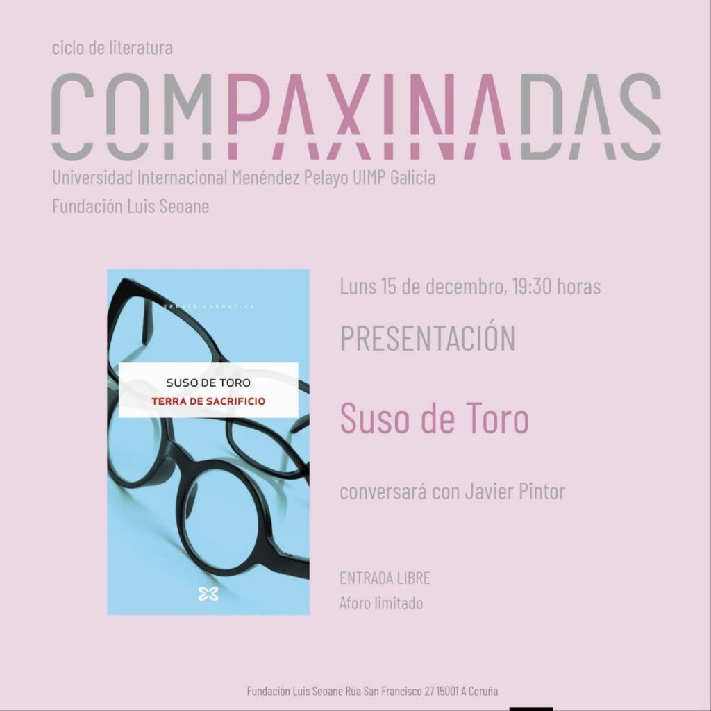 Publicado en Coloquios, Narrativa, Presentacións de libros | Etiquetado Edicións Xerais, Fundación Luís Seoane, Javier Pintor, Suso de Toro, Terra de sacrificio, UIMP