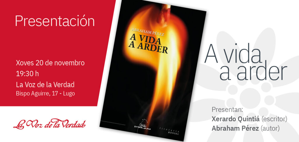 Publicado en Narrativa, Presentacións de libros | Etiquetado A vida a arder, Abraham Pérez, Editorial Galaxia, Libraría La Voz de la Verdad Lugo, Xerardo Quintiá