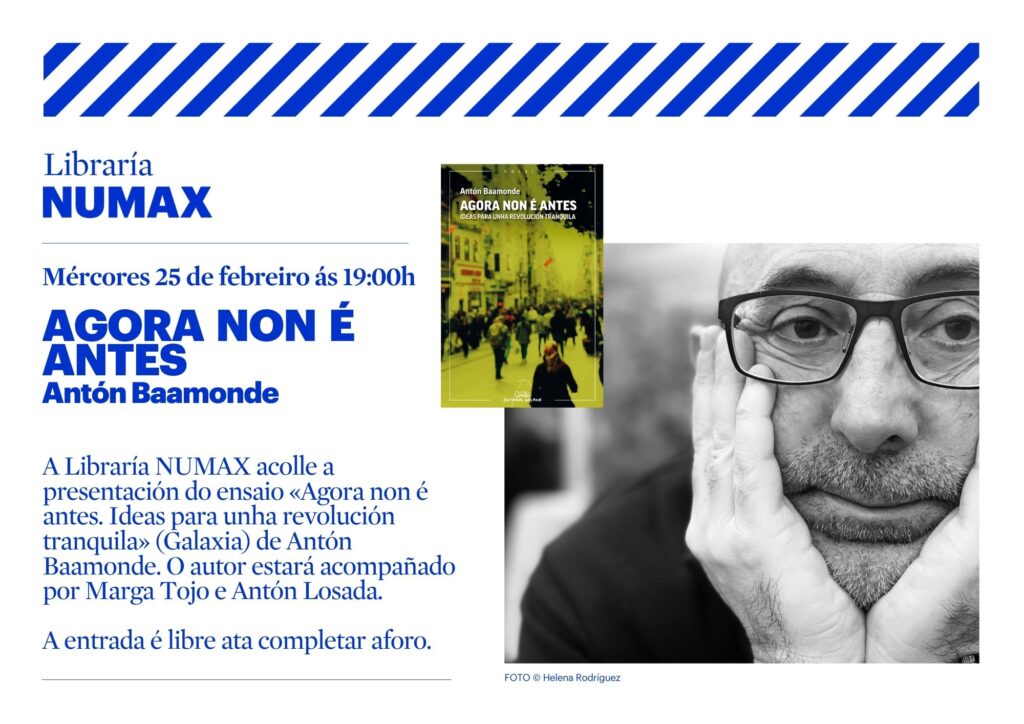 Publicado en Ensaio, Presentacións de libros | Etiquetado Agora non é antes. Ideas para unha revolución tranquila, Antón Baamonde, Antón Losada, Editorial Galaxia, Marga Tojo, Numax