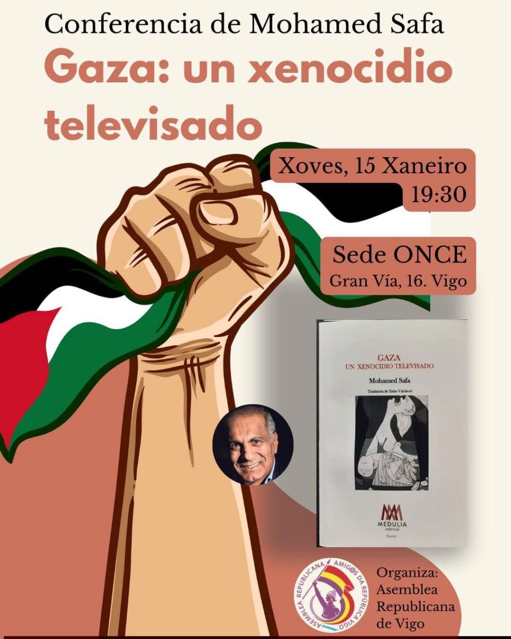 Conferencia de Mohamed Safa, autor de Gaza. Un xenocidio televisado, en Vigo