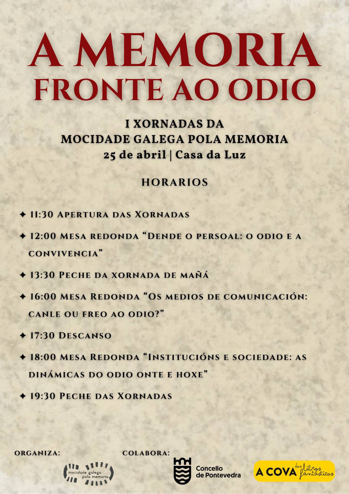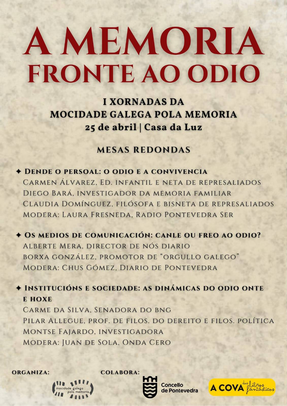 I Xornadas da Mocidade Galega pola Memoria. A memoria fronte ao odio, en Pontevedra