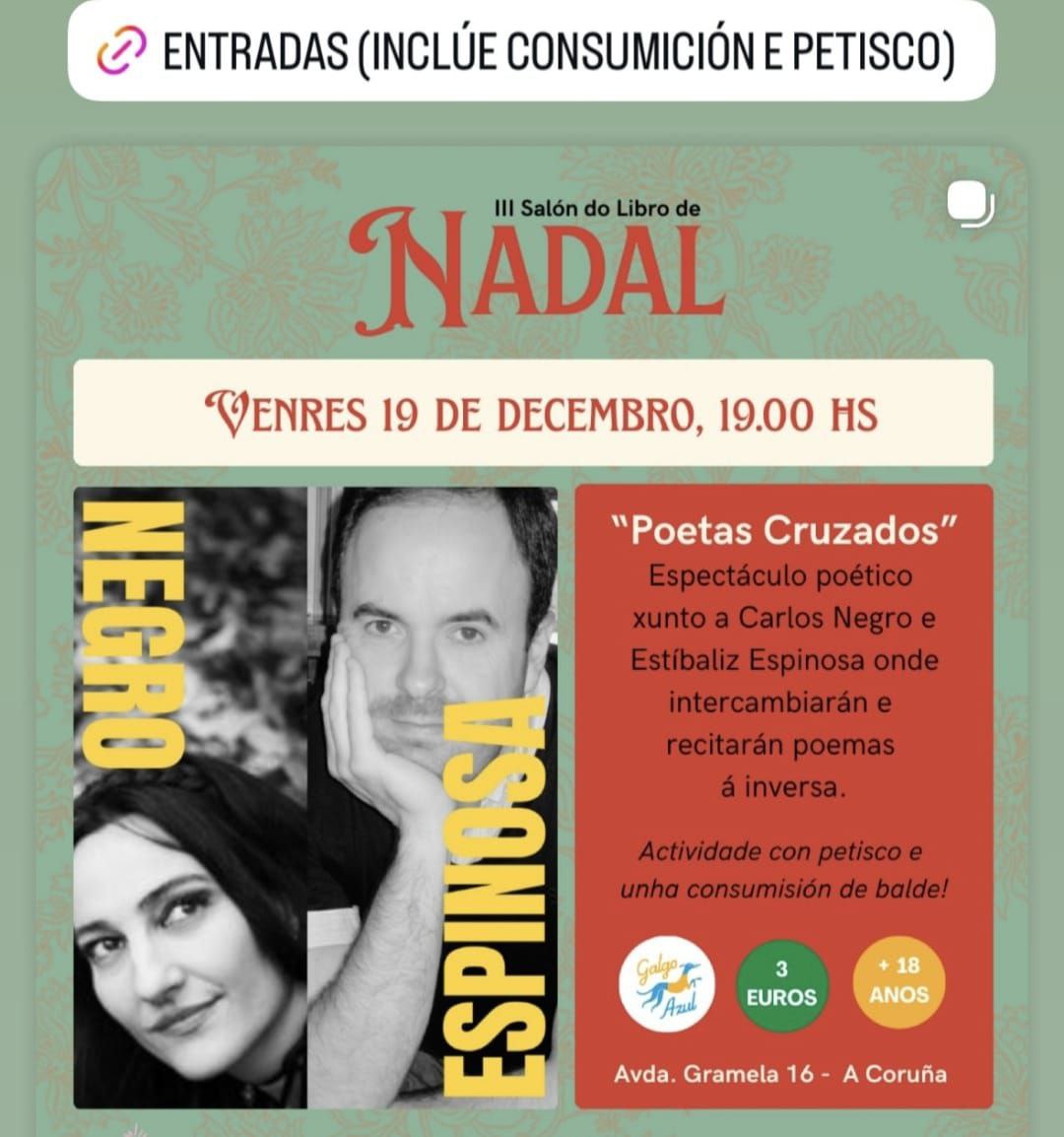 “Poetas cruzados”, con Estíbaliz Espinosa e Carlos Negro, na Coruña