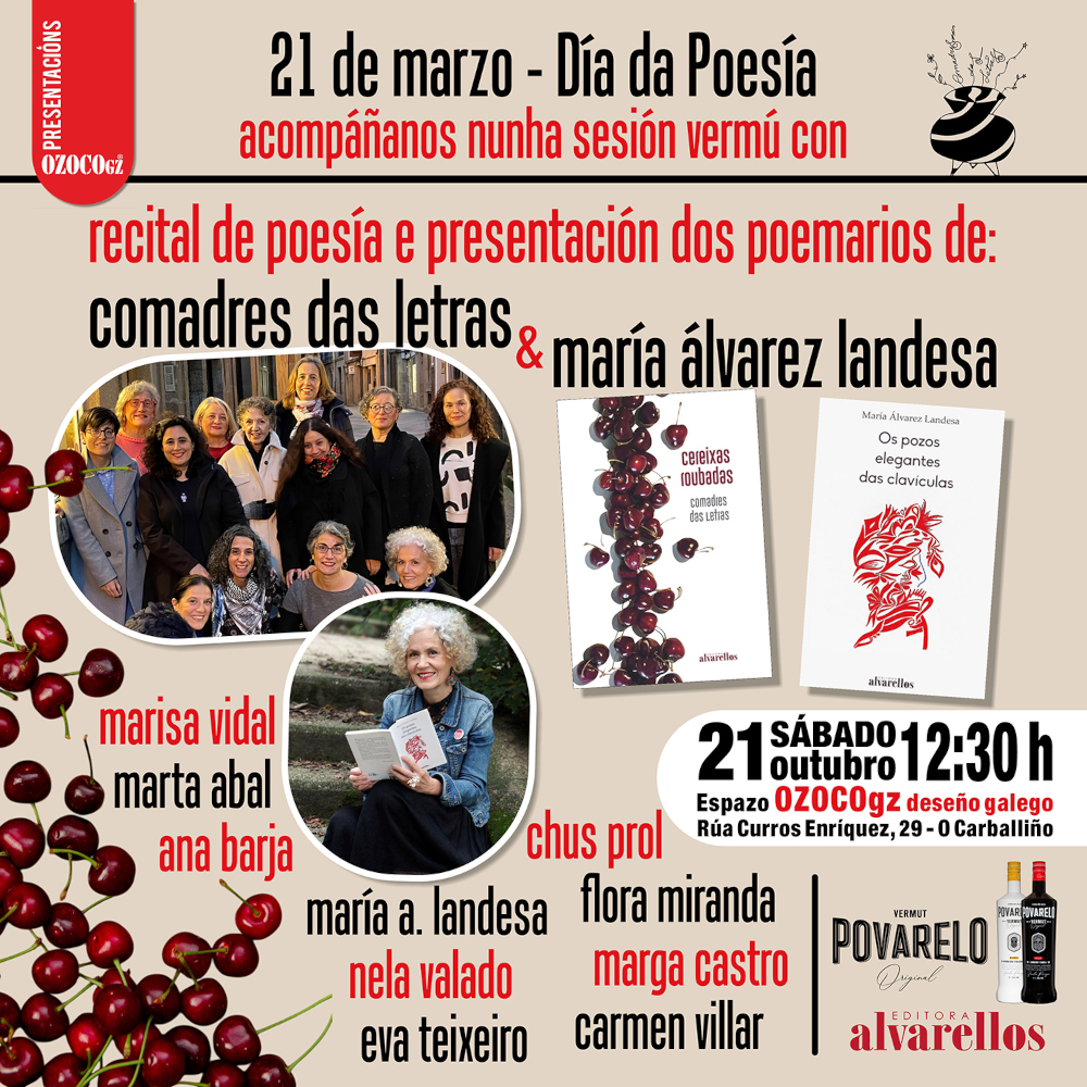 - Alvarellos Editora, Ana Barja, Carmen Villar Alonso, Cereixas roubadas, Chus Prol, Comadres das Letras, Eva Teixeiro, Flora Miranda, Marga Castro, María Álvarez Landesa, Marisa Vidal Collazo (Marisa de Corme), Marta Abal, Nela Valado, Os pozos elegantes das clavículas, OZOCOgz