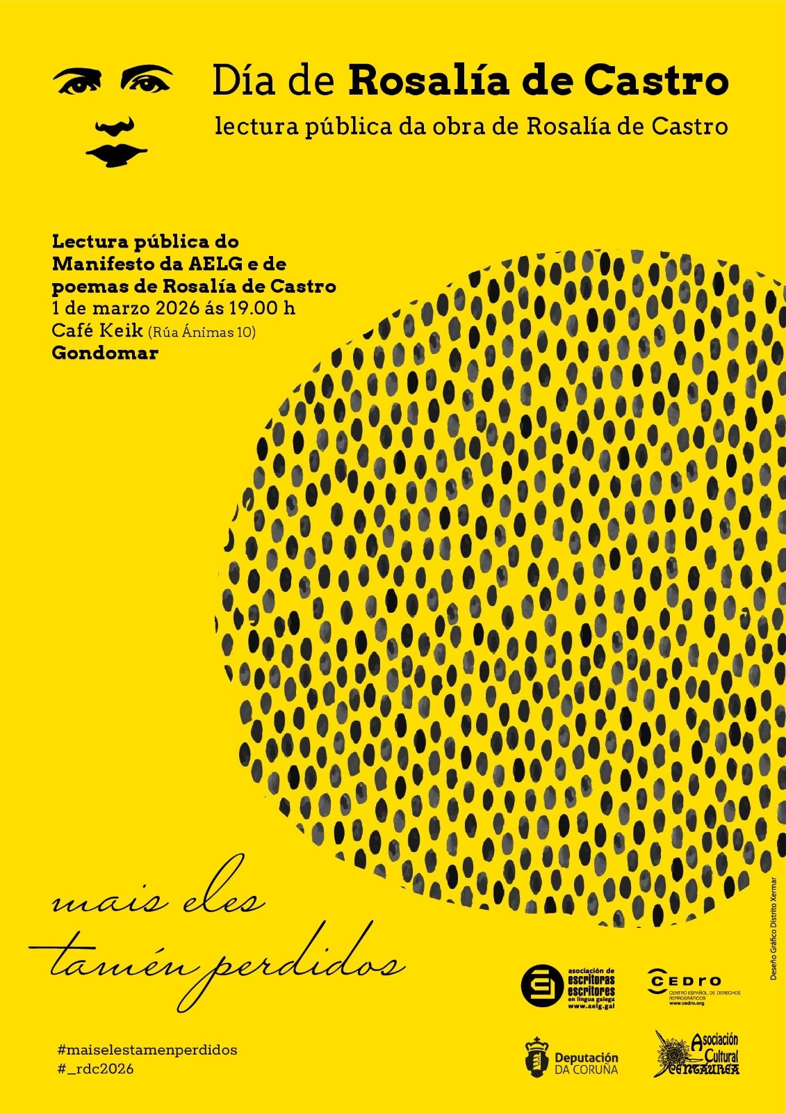 O domingo 1 de marzo, ás 19:00 horas, en colaboración coa Asociación Cultural Centáurea, terá lugar no Café Keik (Rúa Ánimas, 10), en Gondomar, a lectura do Manifesto da AELG, obra de Eva Veiga, e un recital poético da obra de Rosalía de Castro. Esta actividade conta tamén co apoio do Centro Español de Dereitos Reprográficos (CEDRO) e a Deputación da Coruña.