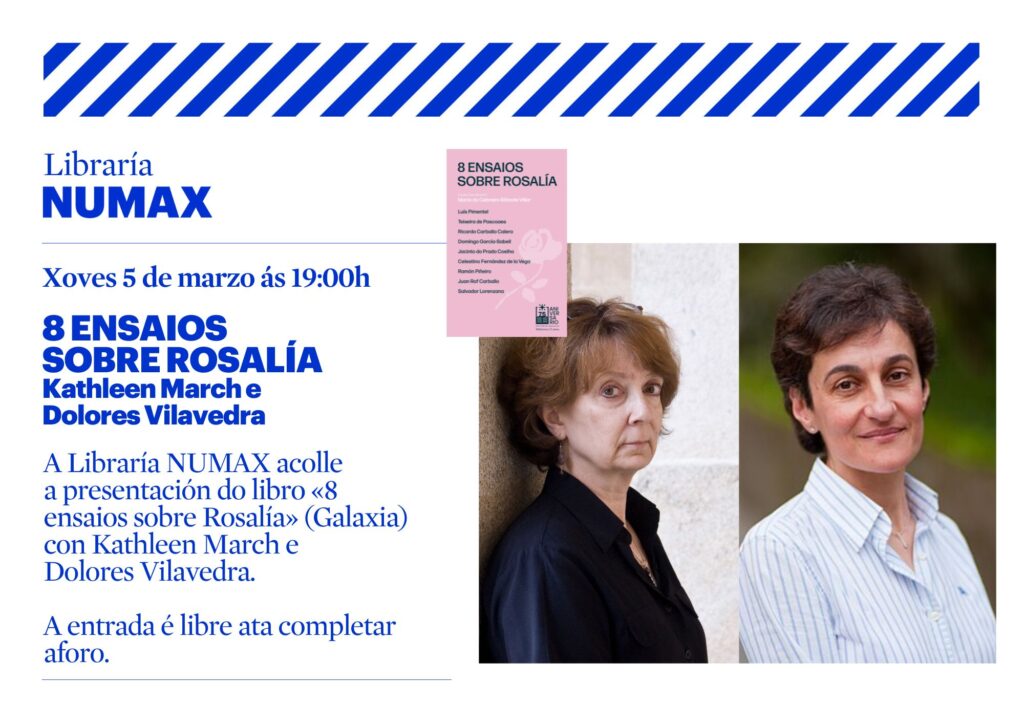 Publicado en Ensaio, Presentacións de libros | Etiquetado 8 ensaios sobre Rosalía, Dolores Vilavedra, Editorial Galaxia, Kathleen March, Numax, Rosalía de Castro