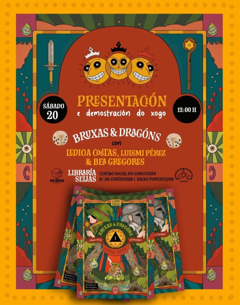 Etiquetado Bea Gregores, Bruxas e Dragóns, Centro Social Gorgullón (Pontevedra), Editorial Triqueta verde, Ledicia Costas, Libraría Seijas Pontevedra, Luismi Pérez