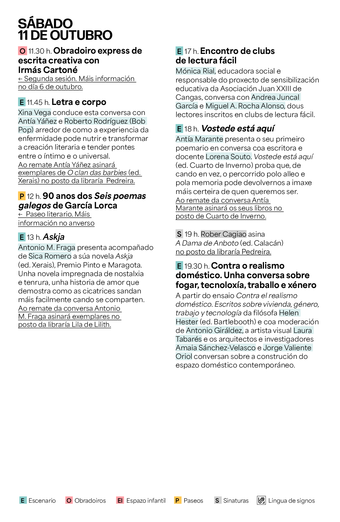 – L: Que não seja possível fazer essa equivalência imediata entre as escritoras e a margem, não significa que não existam dinâmicas sócio-literárias que as afetem em particular. No entanto, o conceito de margem, tal como o desenvolvo no livro, não se refere a um espaço único ou homogêneo. Uma das chaves da minha leitura, seguindo Helena González, é que essa visão já é insuficiente quando se fala da situação das narradoras no campo literário galego atual.