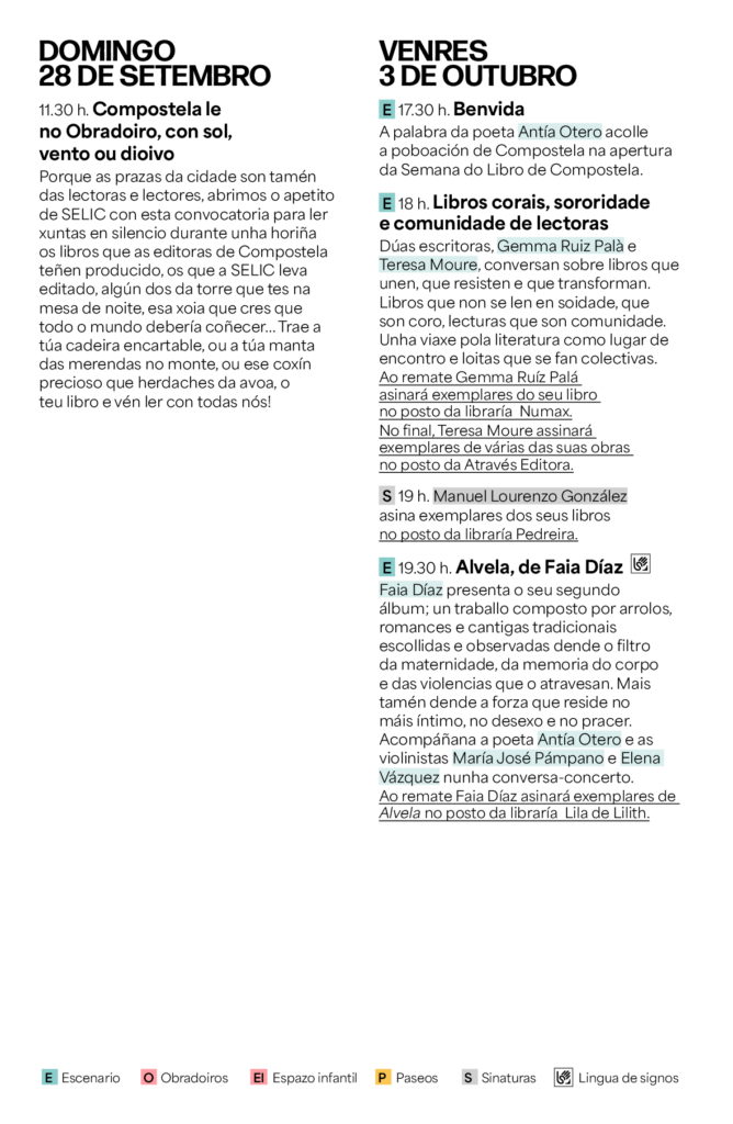 – 20:00 h. Poesía e edición. Galicia e Portugal. Genaro da Silva, Antón Blanco Casás, António Sá Gué, da editorial Lema d’Origem e César Lorenzo Gil. Aira Editorial (Allariz). ESCENARIO.