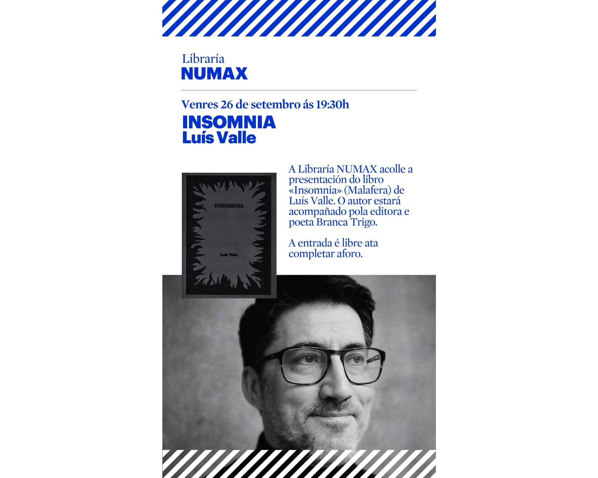 Publicado en Poesía, Presentacións de libros | Etiquetado Branca Trigo Cabaleiro, Edicións Malafera, Insomnia, Luís Valle, Numax