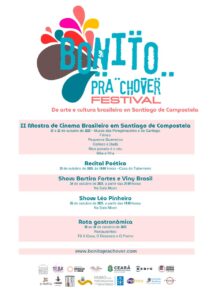 Bonito pra chover é un Festival de arte e cultura brasileira en Santiago de Compostela, con diversas actividades que terán lugar durante o mes de outubro de 2025.