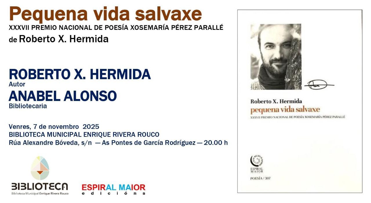 Etiquetado Anabel Alonso, Biblioteca Municipal Enrique Rivera Rouco das Pontes, Edicións Espiral Maior, Pequena vida salvaxe, Roberto X. Hermida