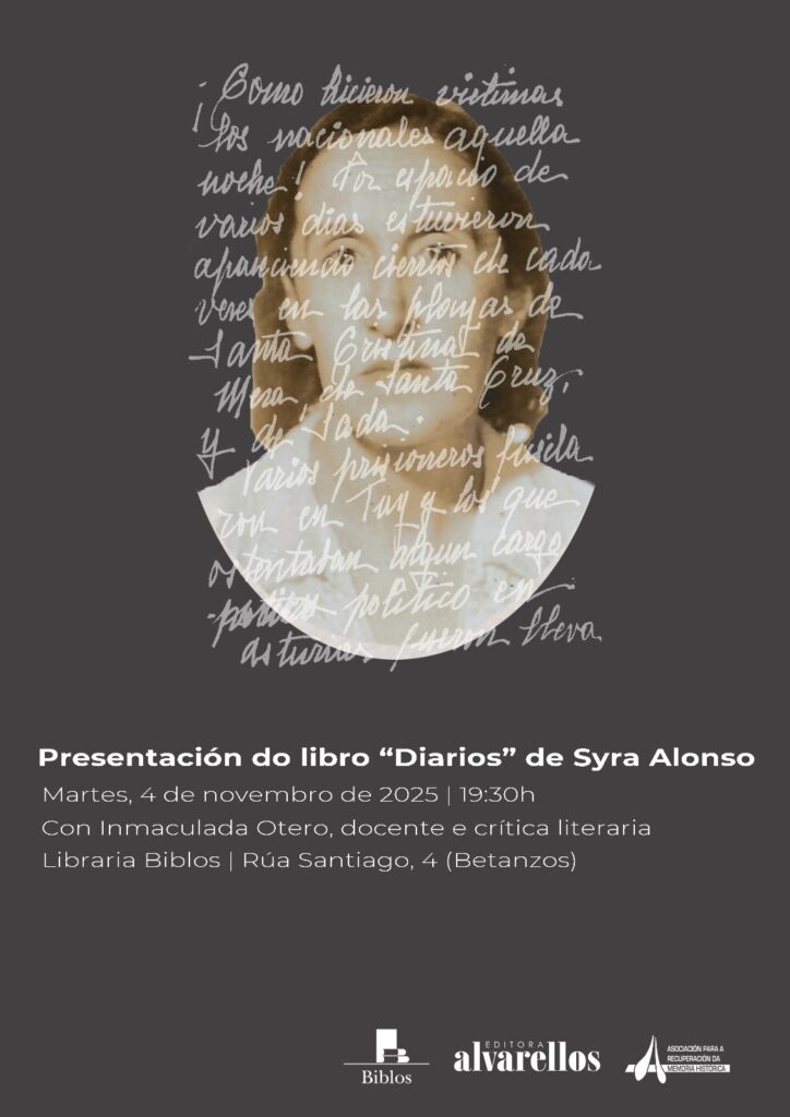 “‘O vello agoniza e o novo canta tarda en chegar!’. Con esta frase ábrese Diarios, o libro que recolle os textos de Syra Alonso unha das máis importantes cronistas da represión franquista en Galicia.