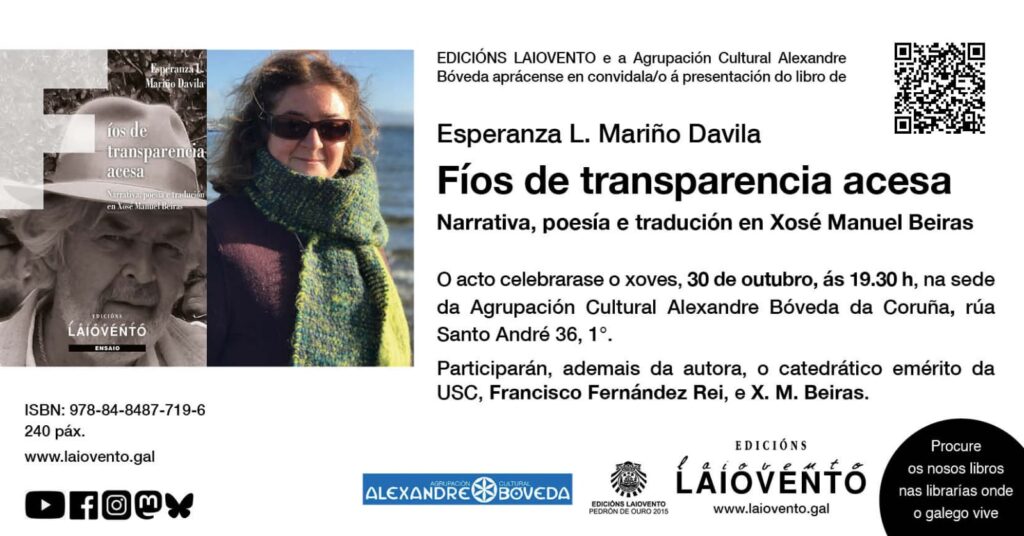 Vigo: presentación de Fíos de transparencia acesa, de Esperanza L. Mariño Davila, o 28 de outubro