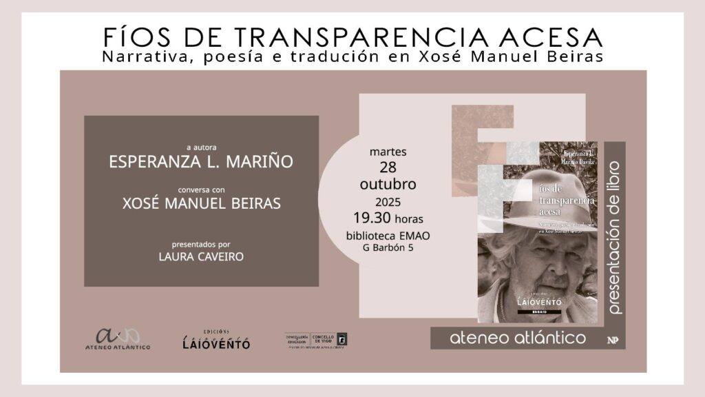 Compostela: presentación de Fíos de transparencia acesa. Narrativa, poesía e tradución en Xosé Manuel Beiras, con Esperanza Mariño Davila